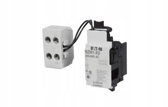Opcjonalne akcesoria do serii wyłączników NZM obejmują szeroką ofertę urządzeń przystosowanych do użytku międzynarodowego. Montaż jest elastyczny i łatwy dzięki modułowym grupom funkcyjnym. Wskazówki: Bezopóźnieniowe odłączanie wyłączników mocy NZM wzgl wyłączników mocy N przy spadku napięcia sterującego poniżej 35-70% US. Znajduje zastosowanie w urządzeniach WYŁĄCZANIA AWARYJNEGO w połączeniu z przyciskiem WYŁĄCZANIA AWARYJNEGO. Gdy wyzwalacz podnapięciowy nie jest pod napięciem, przy próbach włączania występuje niezawodna ochrona przed dotknięciem styków głównych przełącznika. Wyzwalacza podnapięciowego nie montuje się jednocześnie z wyprzedzającym łącznikiem pomocniczym NZM..-XHIV.. lub wyzwalaczem prądu roboczego NZM..-XA... Zastosowanie do: NZM1(-4), N(S)1(-4)
