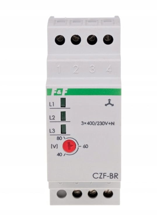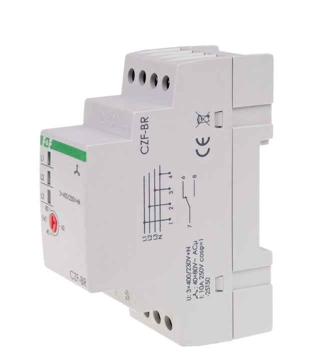 F&F CZF-BR Czujnik zaniku i asymetrii faz z regulowanym progiem progiem asymetrii, montaż na szynie DIN