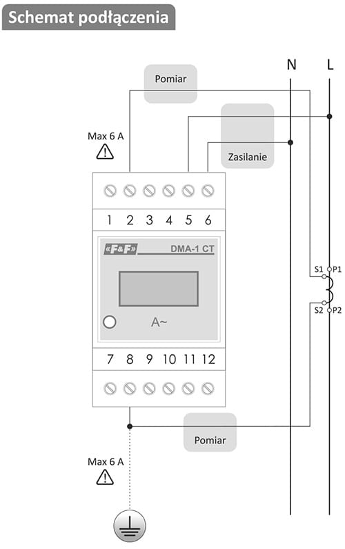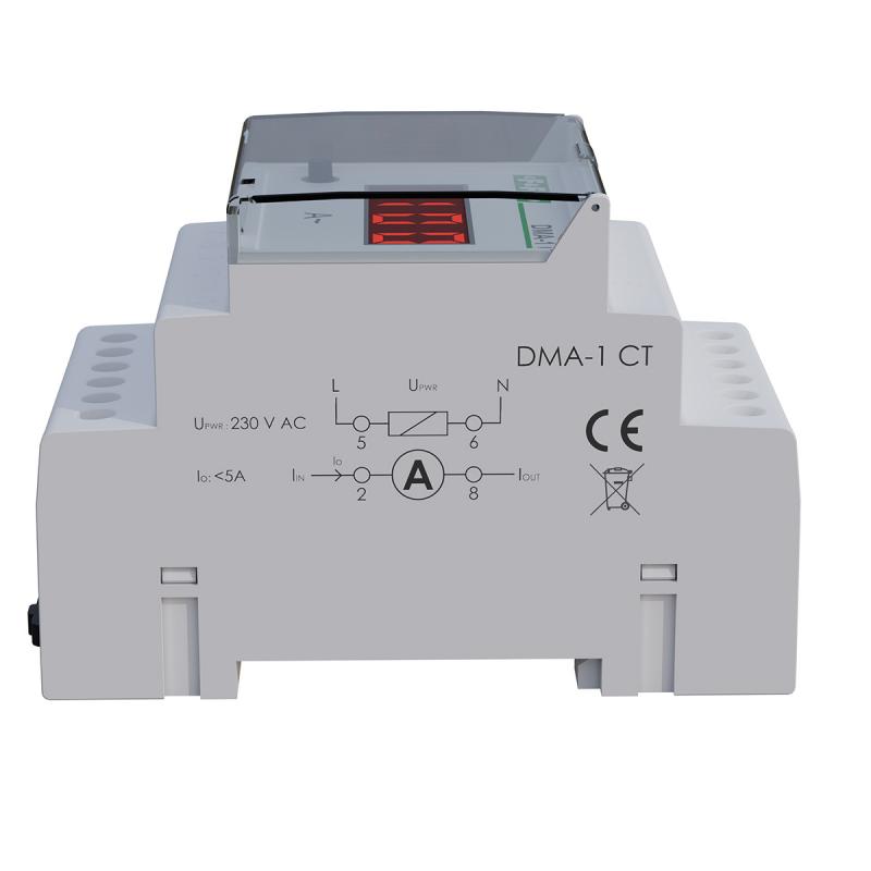 DMA-1 CT jest 1-fazowym wskaźnikiem natężenia prądu, przystosowanym do pomiaru w układzie pośrednim z wykorzystaniem przekładników prądowych z prądem wyjściowym 5 A.