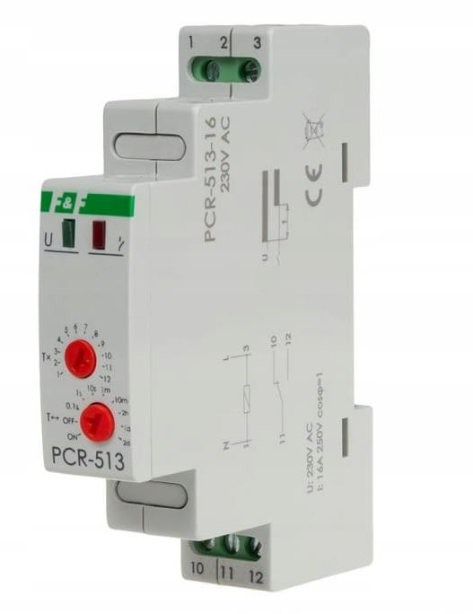 F&F PCR-513 Przekaźnik czasowy rewersyjny, styki: 1NO/NC, 230V