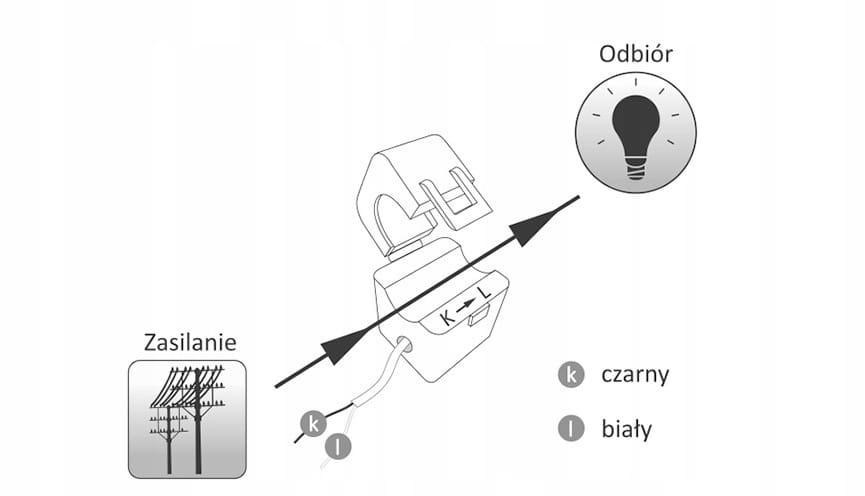 W zestawie wraz z urządzeniem dostarczane są miniaturowe, otwierane przekładniki prądowe. Do ich zapinania na mierzonych przewodach nie jest wymagana ingerencja w przewody prądowe. Należy jednak zwrócić szczególną uwagę na sposób przełożenia przewodu przez przekładnik oraz podłączenie wtórnej strony przekładnika do urządzenia.
