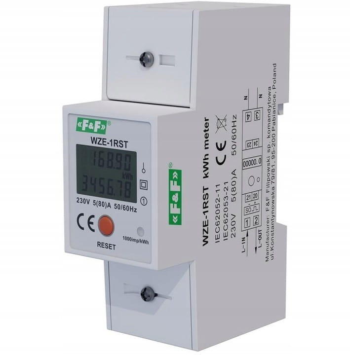 F&F WZE-1RST Jednofazowy licznik zużycia energii 45A z funkcją RESET