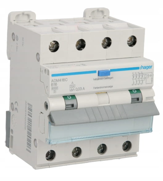 HAGER ADM416C RCBO Wyłącznik różnicowoprądowy 4P 6kA B 16A/30mA Typ A z członem nadprądowym