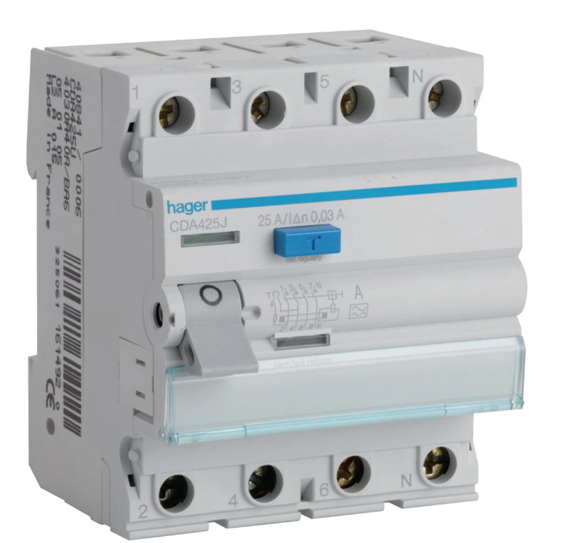 HAGER CDA425J RCCB Wyłącznik różnicowoprądowy 3P+N 25A 30mA 6kA A