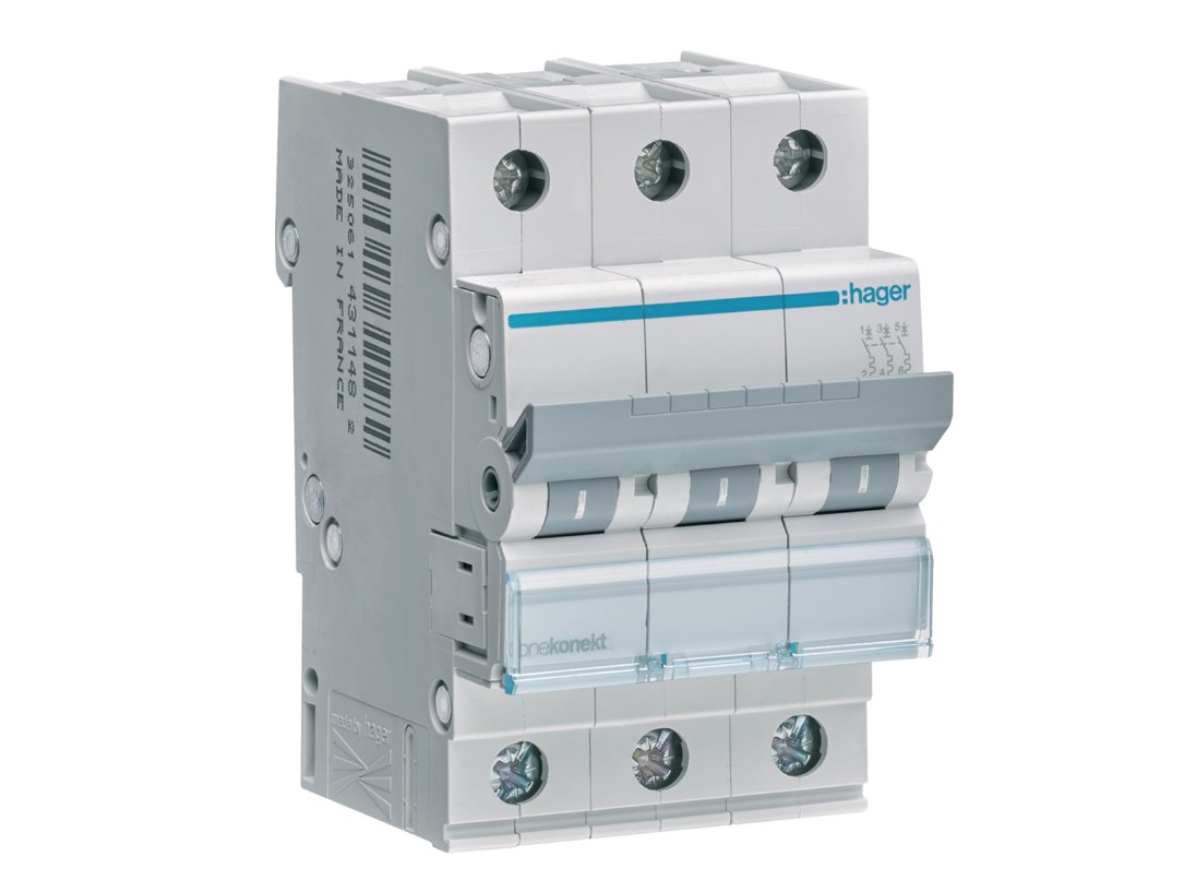 HAGER MCN306E MCB Wyłącznik nadprądowy Icn=6000A 3P C 6A