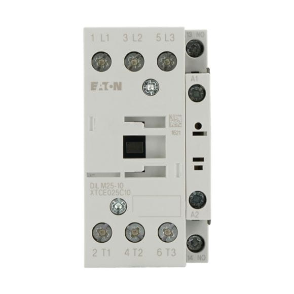Stycznik, Zastosowanie: Styczniki do silników, Styczniki do 170 A, 3-biegunowy, Kategoria użytkowa: AC-1: Obciążenia nieindukcyjne lub obciążenia o małej indukcyjności, piece oporowe, NAC-3: Standardowe silniki indukcyjne AC: rozruch, wyłączanie w trakcie pracy, AC-4: Stand. silniki indukcyjne AC: rozruch, podłączanie, cofanie, praca spowolnion, Sposób podłączenia: Zaciski śrubowe, Uwagi: Odpowiednie również dla silników o klasie sprawności IE3., Urządzenia spełniające normy IE3 są oznaczone odpowiednim logo na opakowaniu., Liczba biegunów: 3-biegunowy, Znamionowy prąd roboczy AC-3, 380 V 400 V: Ie= 25 A, Znamionowy prąd roboczy AC-1 Prąd cieplny umowny na wolnym powietrzu, 3-biegunowy.