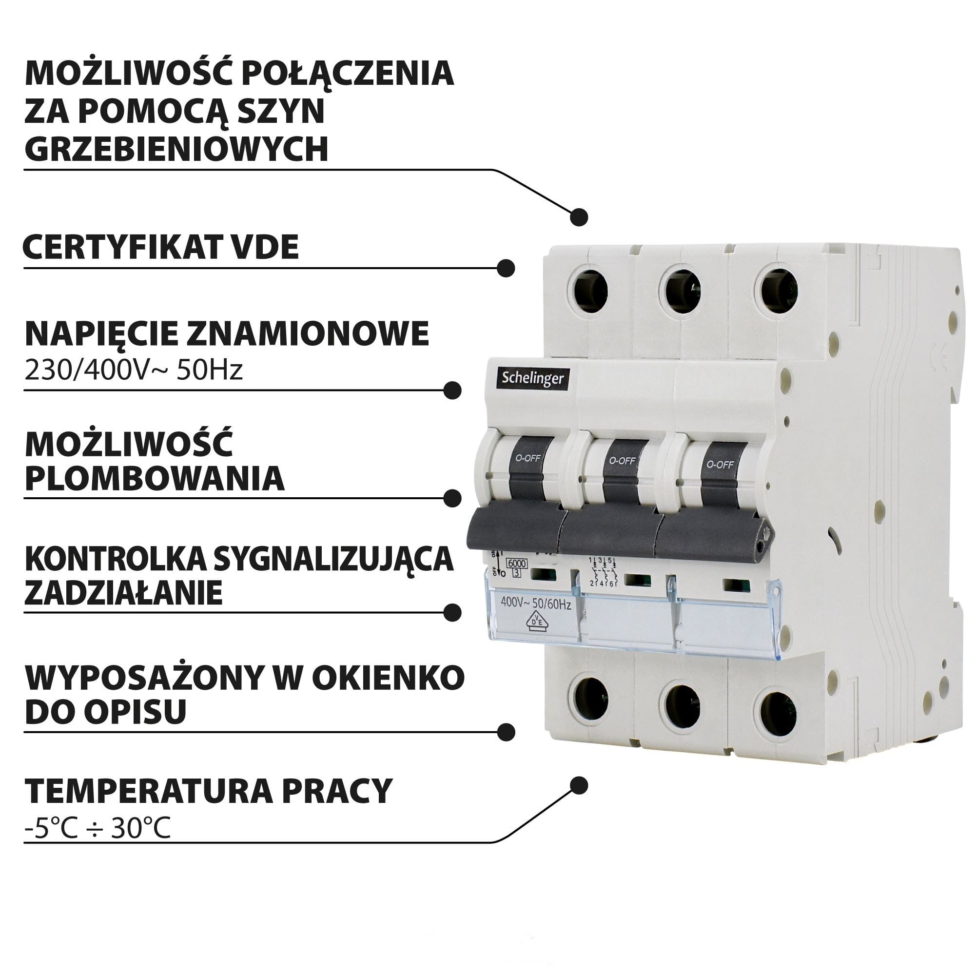 SCHELINGER A02-G8-3P-B25 WYŁĄCZNIK NADPRĄDOWY 6KA 3P B 25A VDE