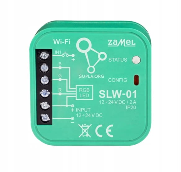 Moduł SLW-01 umożliwia sterowanie oświetleniem LED RGB za pomocą smartfona lub tabletu. Moduły dopuszkowe SLW-01 znajdują zastosowanie zarówno jako elementy do montażu w puszkach instalacyjnych pod- i natynkowych, oraz jako urządzenia wykonawcze zabudowywane bezpośrednio w obudowach opraw oświetleniowych.