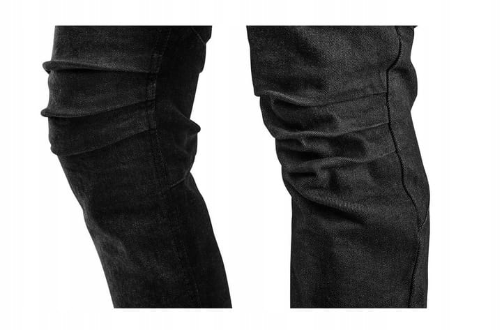 W kroku oraz pod kolanem mają naszyty panel materiału, wzmacniający spodnie przed przetarciami