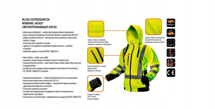 Bluza robocza ostrzegawcza NEO o intensywnej widzialności to praktyczne rozwiązanie zwiększające bezpieczeństwo użytkownika, polegające na sygnalizowaniu jego obecności w każdych warunkach oświetlenia dziennego jak i w ciemności w sztucznym oświetleniu np. światłami pojazdów