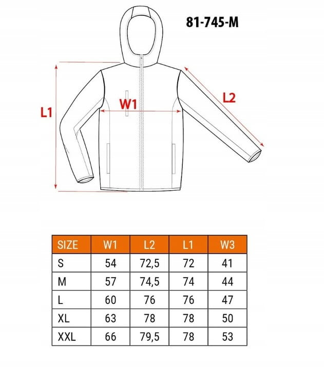 W1 Szerokość klatka piersiowa: 57 cm