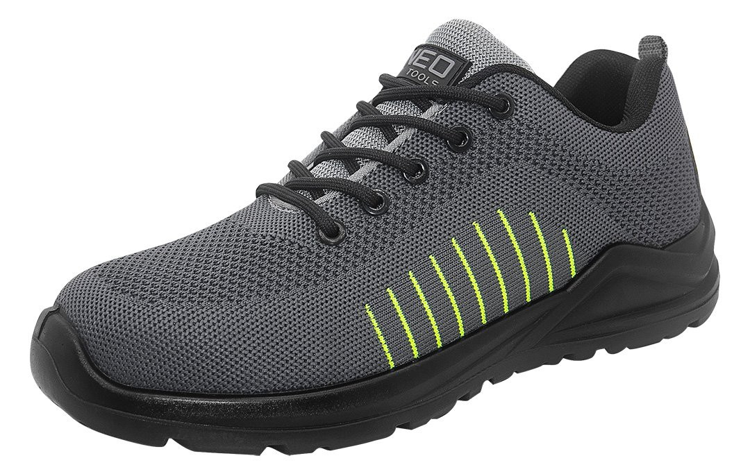 Półbuty robocze S1 FO, stalowy podnosek, rozmiar 39, 82-162-39 marki NEO TOOLS to obuwie wykonane w kategorii ochronnej S1 FO, charakteryzujące się podnoskiem zapewniającym zabezpieczenie przed uderzeniami z energią równą 200J, odpornością na oleje, benzynę i inne rozpuszczalniki organiczne. Półbuty robocze NEO TOOLS posiadają solidny stalowy podnosek, cholewkę dzianinową flyknit oraz wyściółkę z dzianiny typu ,,siatka”. Obuwie wyposażone zostały także w podeszwę z PU/PU i we wkładkę piankową EVA. Metalowy podnosek chroni stopę przed kontuzjami. Cholewka półbutów roboczych NEO TOOLS typu flyknit tkana jest z jednej nici, co wpływa na lekką konstrukcję oraz bardzo dobre dopasowanie obuwia do stopy. Produkt posiada zgodność z certyfikatem CE, według normy EN ISO 20345.