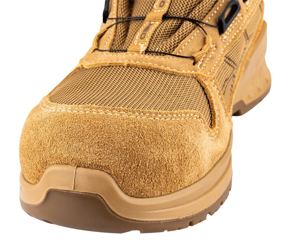 Półbuty robocze S1 SR FO, linkowe wiązanie z pokrętłem, rozmiar 41, 82-174-41 marki NEO TOOLS to obuwie, które wyposażone zostało w linkowe wiązanie z pokrętłem, umożliwiające szybkie oraz precyzyjne dopasowanie. Cholewka wykonana ze skóry i dzianiny poliestrowej, wyściółka z dzianiny siatkowej, a także podeszwa z poliuretanu (PU/PU) – gwarantują solidność modelu. Wkładka z pianki HI-POLY zapewnia z kolei wysoki komfort użytkowania. Obuwie NEO TOOLS posiada kompozytowy podnosek chroniący przed uderzeniami o energii 200 J. Model należy do kategorii S1 SR FO – charakteryzując się odpornością na poślizg na podłożu ceramicznym pokrytym roztworem laurylosiarczanu sodu (SLS). Produkt posiada certyfikat CE