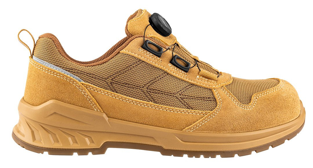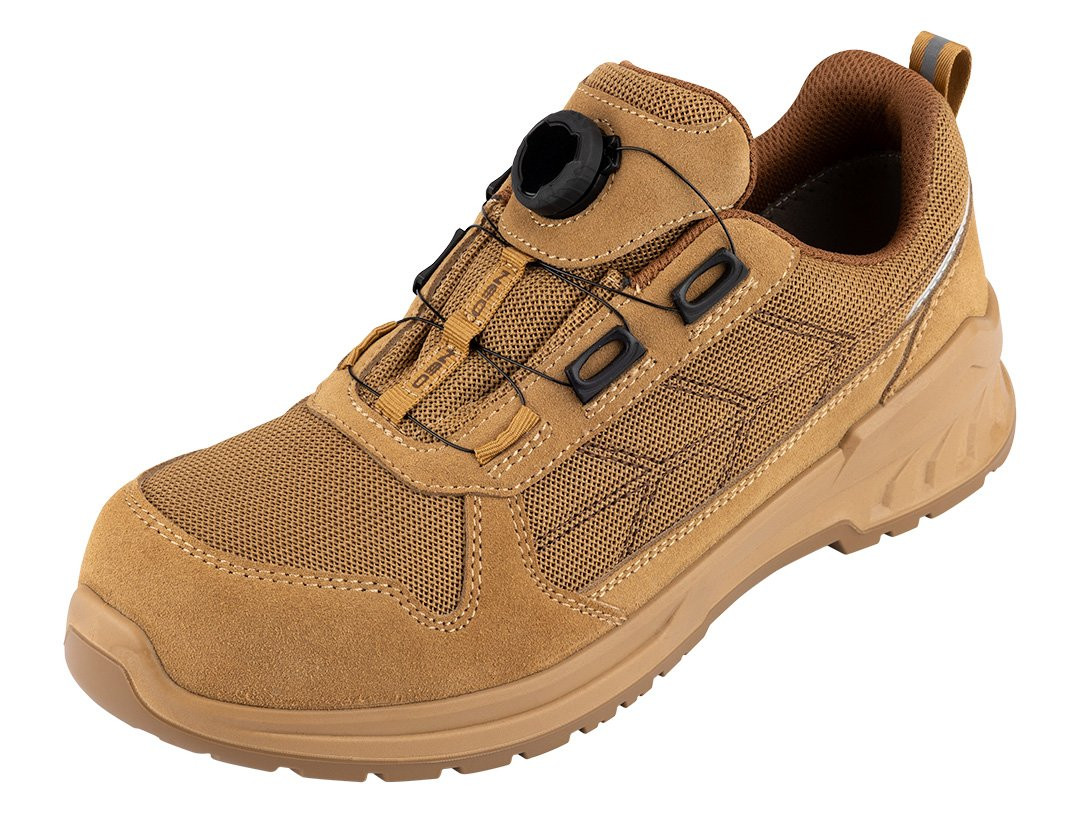 Półbuty robocze S1 SR FO, linkowe wiązanie z pokrętłem, rozmiar 47, 82-174-47 marki NEO TOOLS to obuwie, które wyposażone zostało w linkowe wiązanie z pokrętłem, umożliwiające szybkie oraz precyzyjne dopasowanie. Cholewka wykonana ze skóry i dzianiny poliestrowej, wyściółka z dzianiny siatkowej, a także podeszwa z poliuretanu (PU/PU) – gwarantują solidność modelu. Wkładka z pianki HI-POLY zapewnia z kolei wysoki komfort użytkowania. Obuwie NEO TOOLS posiada kompozytowy podnosek chroniący przed uderzeniami o energii 200 J. Model należy do kategorii S1 SR FO – charakteryzując się odpornością na poślizg na podłożu ceramicznym pokrytym roztworem laurylosiarczanu sodu (SLS). Produkt posiada certyfikat CE