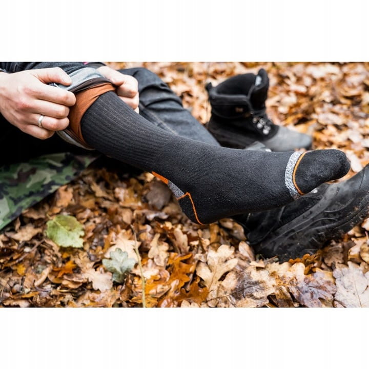 Specjalistyczne skarpety NEO wykonane z wysokiej jakości bawełny z dodatkiem poliestru i elastanu, zapewniają komfort i higienę pracy. Na palcach oraz piętach zastosowano wzmocnienia, które chronią przed szybkimi przetarciami. W dyskretnym czarnym kolorze z pomarańczowo-szarymi wstawkami.