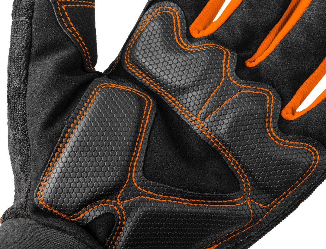 Rękawice robocze z magnesem, bez palców, rozmiar 10" NEO (nr ref. GD014) posiadają magnes na grzbiecie dzięki któremu majsterkowicz ma pod ręką śruby, nakrętki i inne małe elementy w trakcie pracy. Trzy odsłonięte opuszki palców pozwalają na precyzyjną pracę. Palce oraz przeguby dłoni zabezpieczone zostały powłoką gumową działającą przeciwwstrząsowo oraz niwelującą otarcia. Rzep na nadgarstku pozwala na regulację obwodu. Rękawice spełniają warunki dla normy EN 388. Dostępne w rozmiarze 10”.
