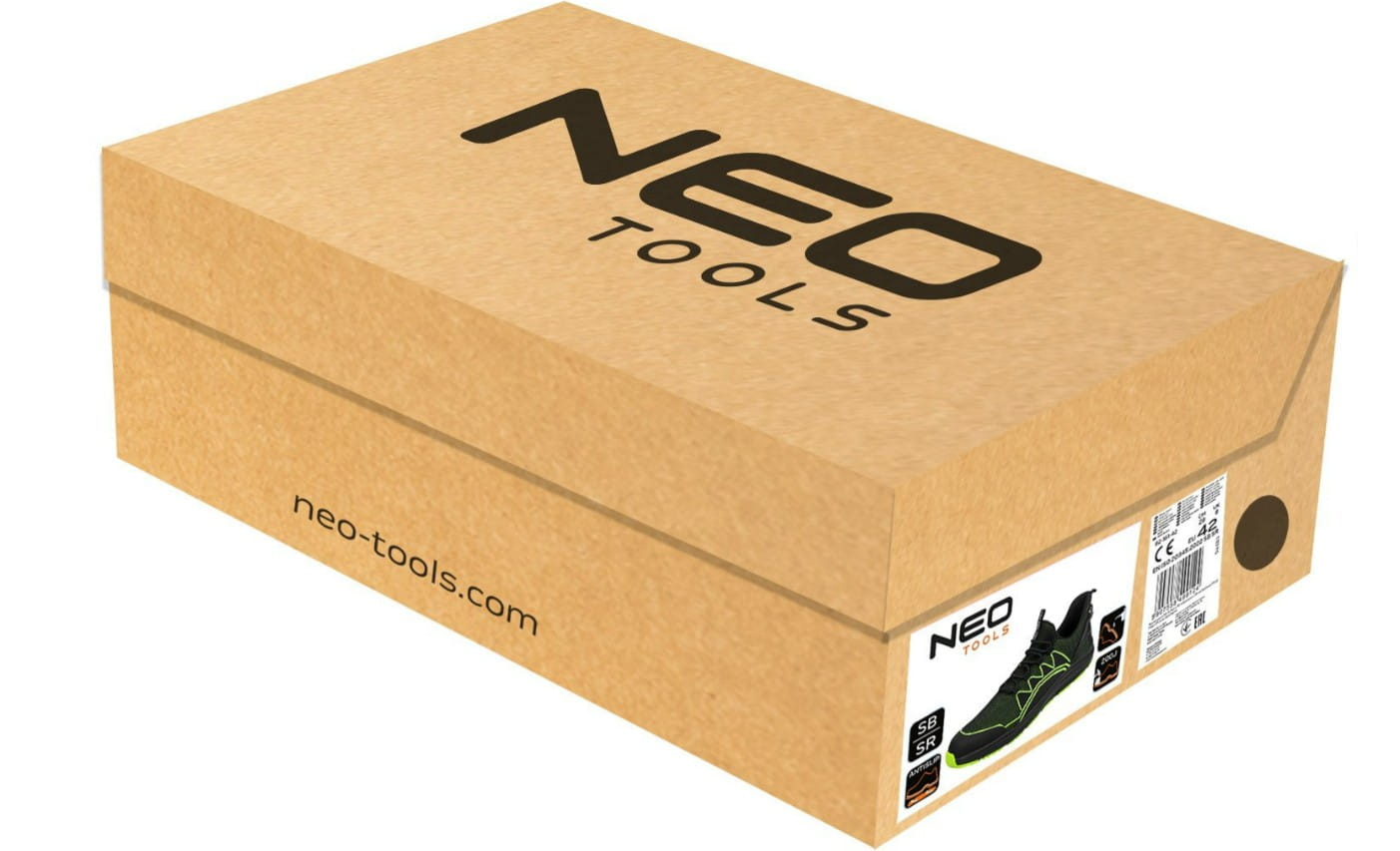 Półbuty robocze to buty należące do kategorii SB SR. Wyposażone w stalowy podnosek, cholewkę z dzianiny siatkowej, dzianinową wyściółkę typu ,,siatka”, podeszwę z gumy EVA oraz wkładkę z pianki HI-POLY charakteryzującą się wyjątkową trwałością. Półbuty NEO TOOLS są odporne na poślizg na podłożu ceramicznym pokrytym roztworem laurylosiarczanu sodu (SLS) i na podłożu ze stali pokrytym glicerolem. Obecny w nich podnosek zapewnia ochronę przed uderzeniami z energią równą 200J, a także odporność na oleje, benzynę oraz inne rozpuszczalniki organiczne. Cholewka dzianionowa tkana z jednej nici, co wpływa na lekką konstrukcję obuwia oraz bardzo dobre dopasowanie do stopy. Produkt posiada zgodność z certyfikatem CE.
