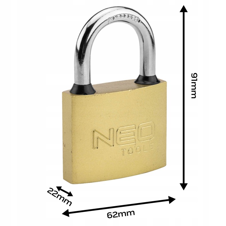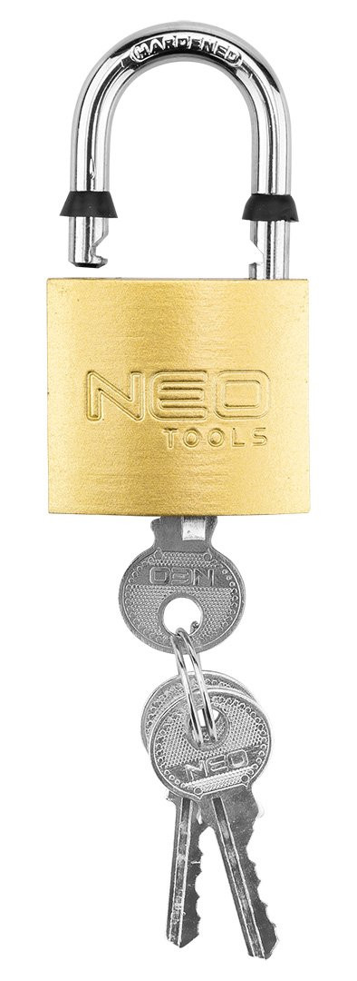 Kłódka 60 mm, 3 klucze 85-053 marki NEO TOOLS to żeliwny model z miedzianą powłoką, wyposażony w 3 klucze. Jarzmo o średnicy 9 mm i wymiarach 62 x 22 x 91 mm zapewnia odpowiednią wytrzymałość, a zastosowane uszczelki chronią mechanizm przed deszczem, zwiększając tym samym odporność kłódki NEO TOOLS na warunki atmosferyczne. To praktyczne zabezpieczenie, które sprawdzi się w różnych zastosowaniach – zarówno wewnątrz, jak i na zewnątrz pomieszczeń.