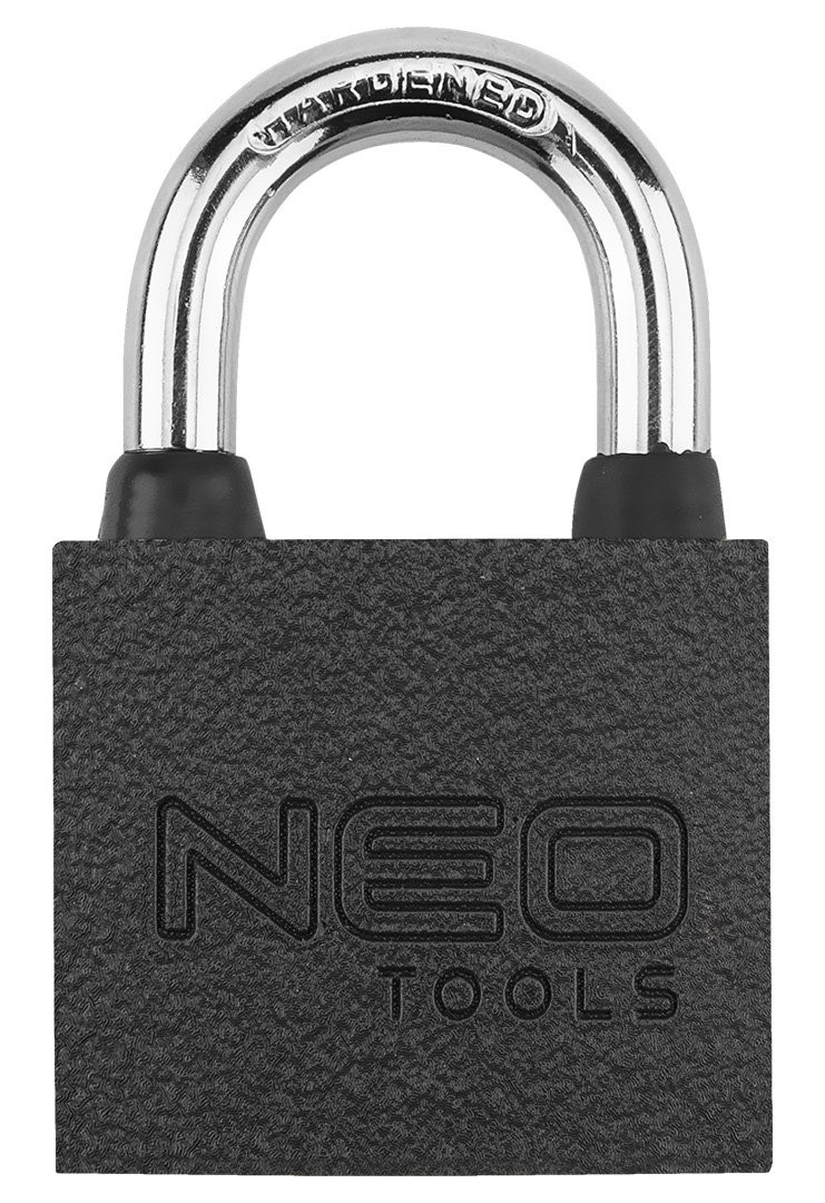 Kłódka 40 mm, 3 klucze 85-057 marki NEO TOOLS to żeliwny model wyposażony w 3 klucze. Jarzmo o średnicy 5,5 mm i wymiarach 38 x 16 x 61 mm zapewnia odpowiednią wytrzymałość, a zastosowane uszczelki chronią mechanizm przed deszczem, zwiększając tym samym odporność kłódki NEO TOOLS na warunki atmosferyczne. To praktyczne zabezpieczenie, które sprawdzi się w różnych zastosowaniach – zarówno wewnątrz, jak i na zewnątrz pomieszczeń.