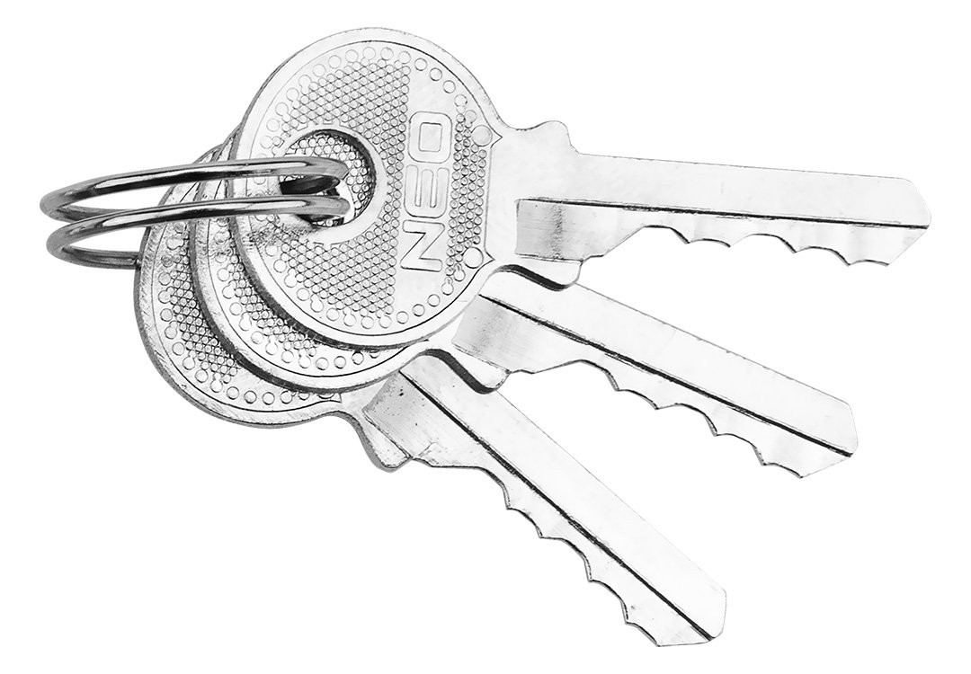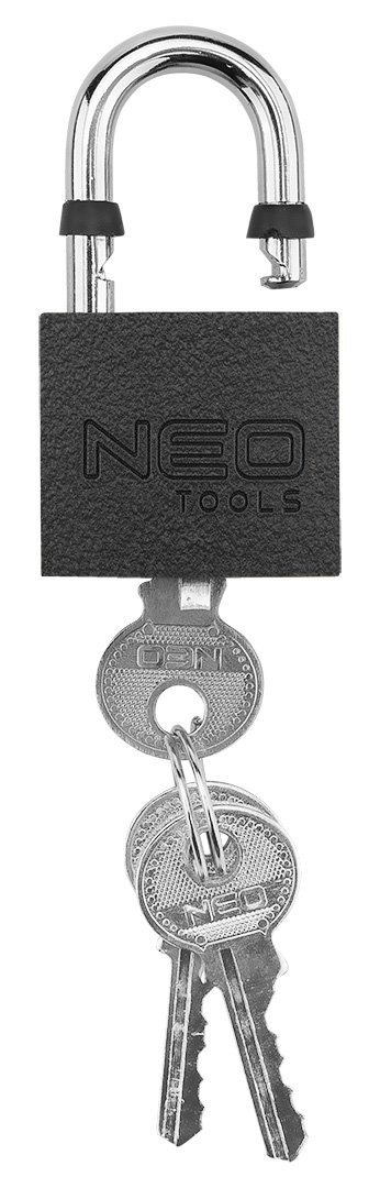 Kłódka 60 mm, 3 klucze 85-059 marki NEO TOOLS to żeliwny model wyposażony w 3 klucze. Jarzmo o średnicy 7 mm i wymiarach 60 x 22 x 91 mm zapewnia odpowiednią wytrzymałość, a zastosowane uszczelki chronią mechanizm przed deszczem, zwiększając tym samym odporność kłódki NEO TOOLS na warunki atmosferyczne. To praktyczne zabezpieczenie, które sprawdzi się w różnych zastosowaniach – zarówno wewnątrz, jak i na zewnątrz pomieszczeń.