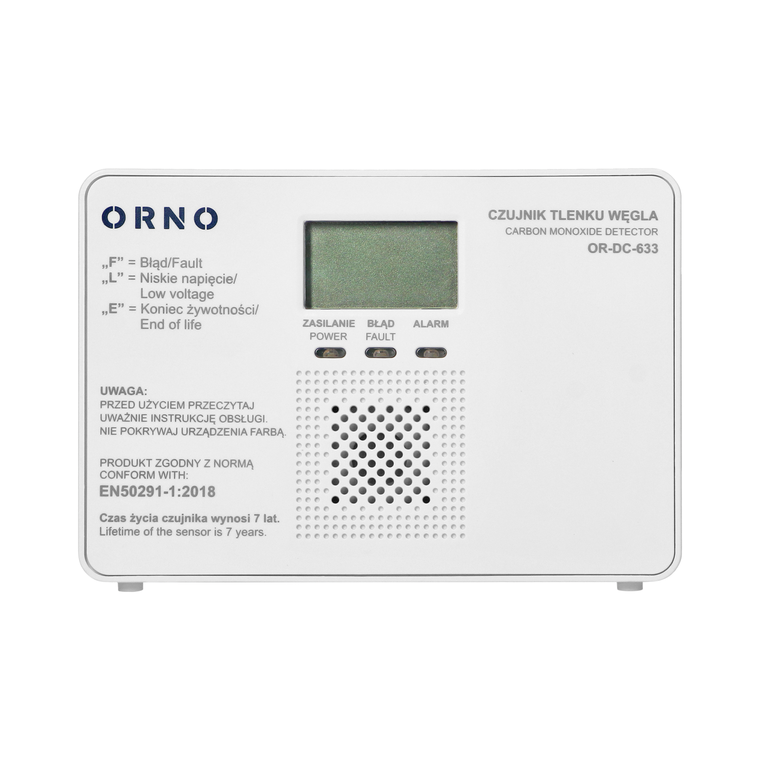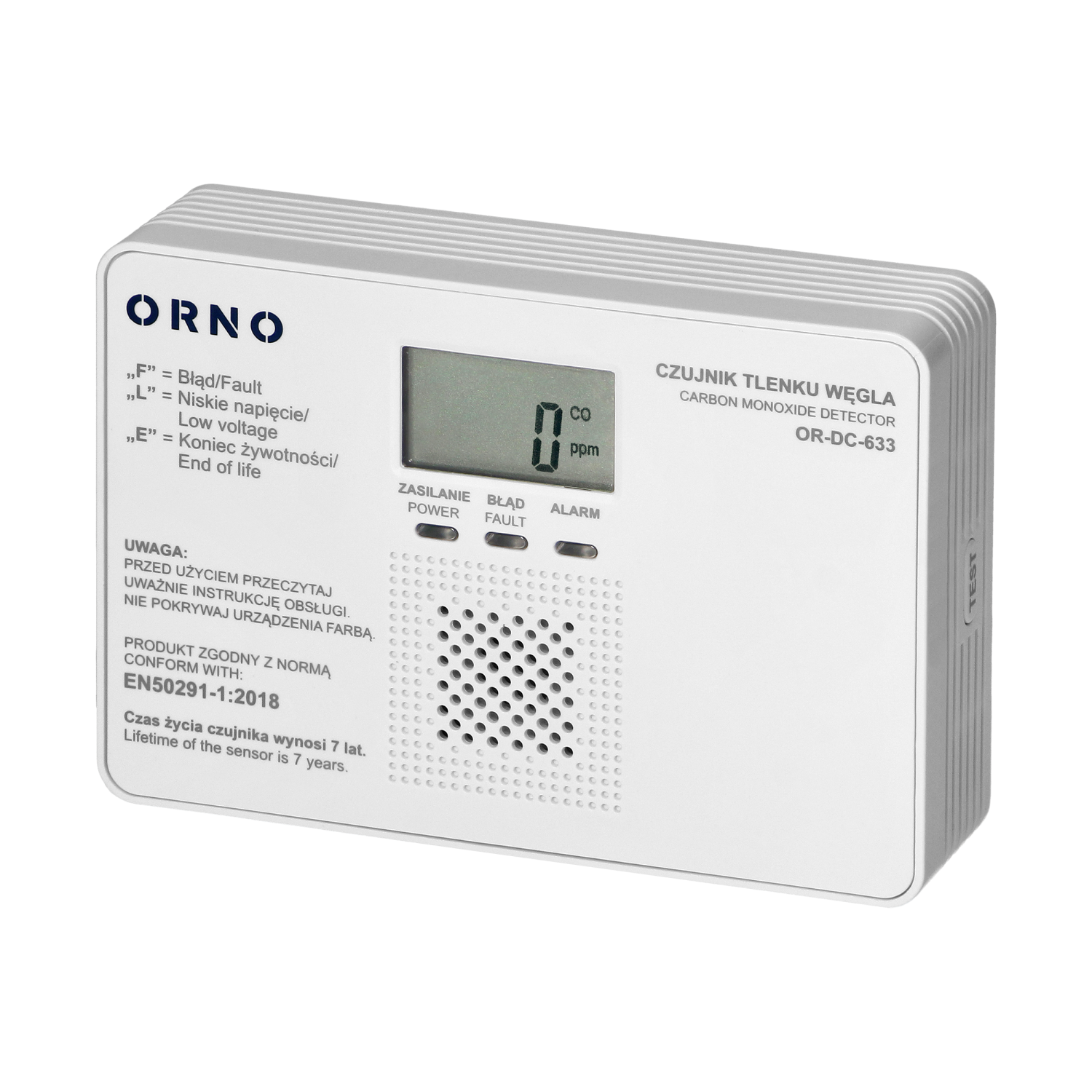 ORNO OR-DC-633 Bateryjny czujnik tlenku węgla (czadu), 9V, żywotność 7lat, zgodność z normą EN 50291-1:2018