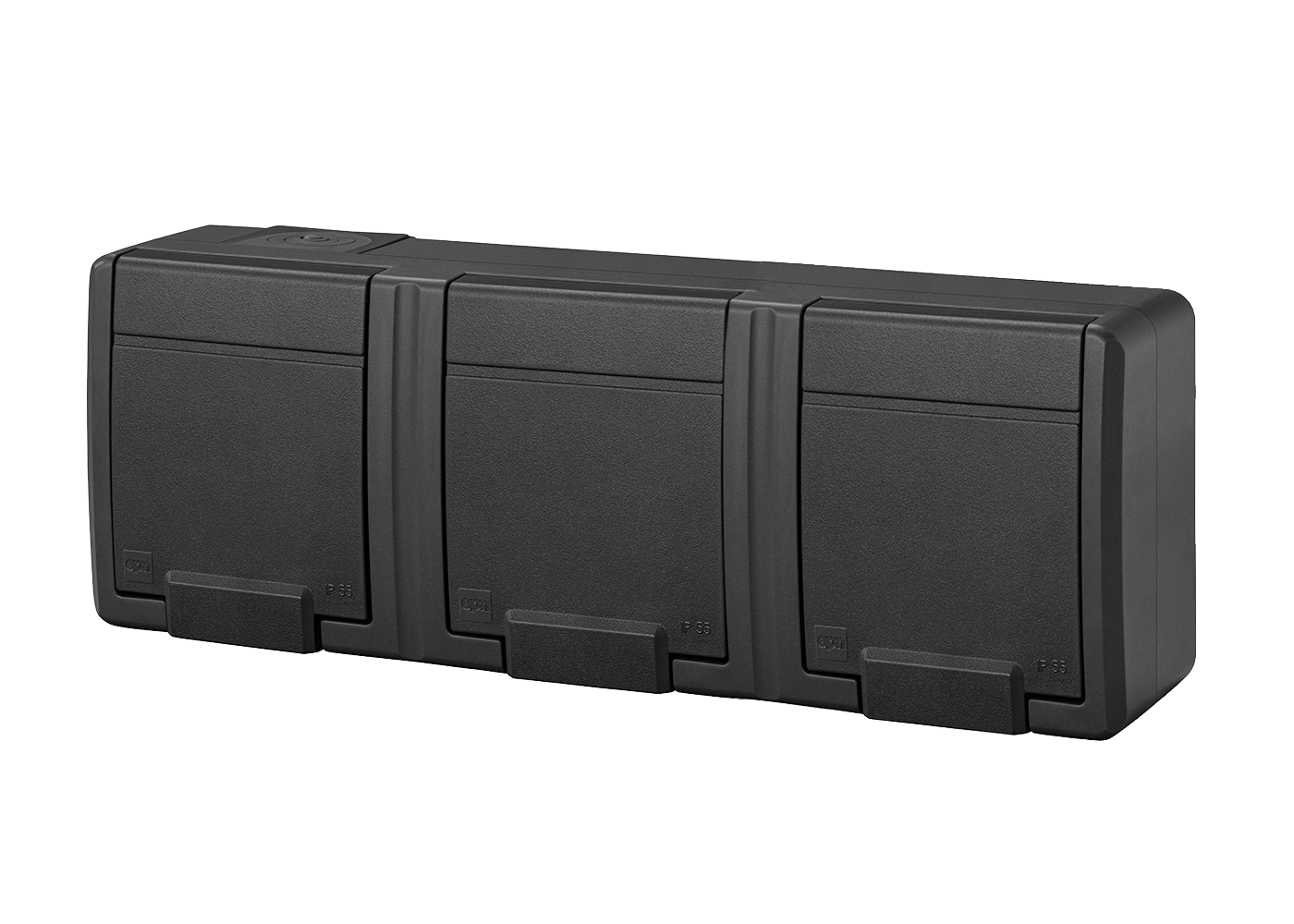 EPN 5043-17 AQUANT 2K gniazdo natynkowe potrójne z uziemieniem 3x2P+Z poziom IP 55 - kolor antracytowy