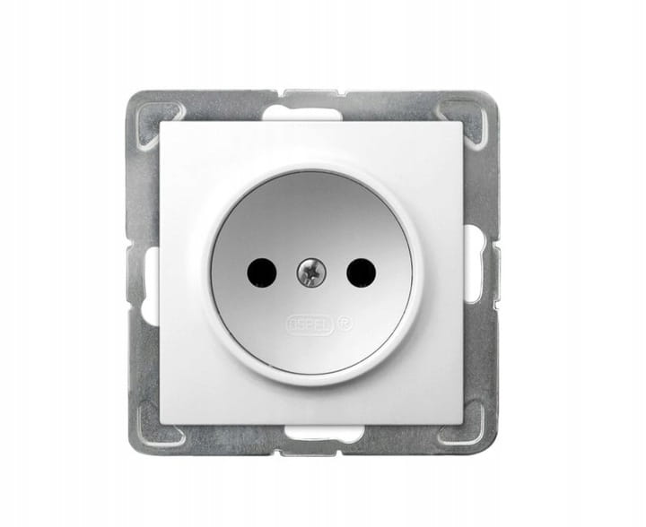 Standardowe gniazdo elektryczne pojedyncze, bez uziemienia. Do kompletu wymagana ramka. Można stosować do systemów ramkowych wielokrotnych.