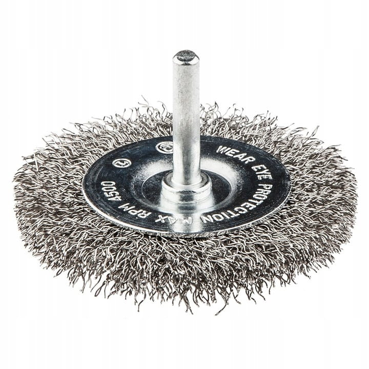 Szczotka druciana GRAPHITE (nr ref. 57H602) o średnicy 75 mm, wykonana z drutu ze stali nierdzewnej o grubości 0.5 mm. Wzmocniona konstrukcja korpusu pozwala na wydajne czyszczenie konstrukcji stalowych ze stali nierdzewnej i stali kwasoodpornej. Mocowanie przystosowane do współpracy z wiertarkami.