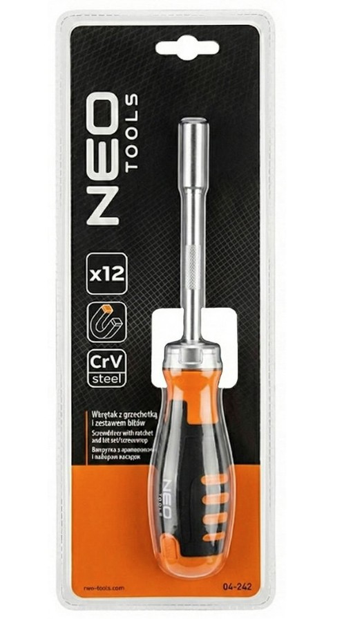 NEO 04-242 Wkrętak z grzechotką i zestawem bitów 12 sztuk