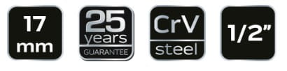 Nasadka sześciokątna długa 1/2" 17 mm NEO (nr ref. 08-467) wykonana z wytrzymałej stali chromowo-wanadowej. Radełkowana powierzchnia poprawia chwyt nasadki. Marka NEO spełnia oczekiwania profesjonalistów.