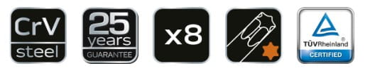 - Materiał wykonania produktu: stal chromowo-wanadowa (CrV)