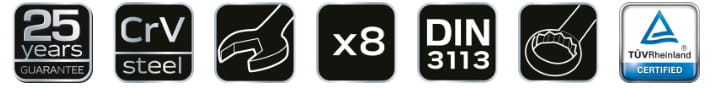 - Klucze płasko-oczkowe w zestawie: 8 szt