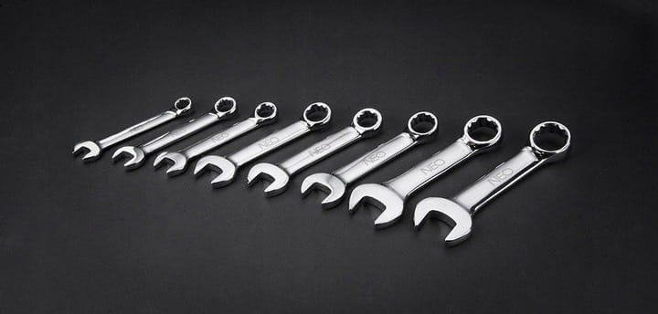 Zestaw kluczy płasko-oczkowych krótkich NEO (nr ref. 09-791) zawiera 8 kluczy w popularnych rozmiarach (od 8 do 19 mm), wykonanych zgodnie z normą DIN 3113. Wysokogatunkowa stal chromowo-wanadowa zapewnia długoletnią wytrzymałość. Krótkie ramię klucza ułatwia pracę w trudno dostępnych miejscach. Narzędzia dostarczane są w praktycznym etui z nadrukowanymi wymiarami kluczy, co ułatwia ich porządkowanie. Jakość narzędzia potwierdzona certyfikatem TÜV i 25-letnią gwarancją producenta. Marka NEO spełnia oczekiwania profesjonalistów.