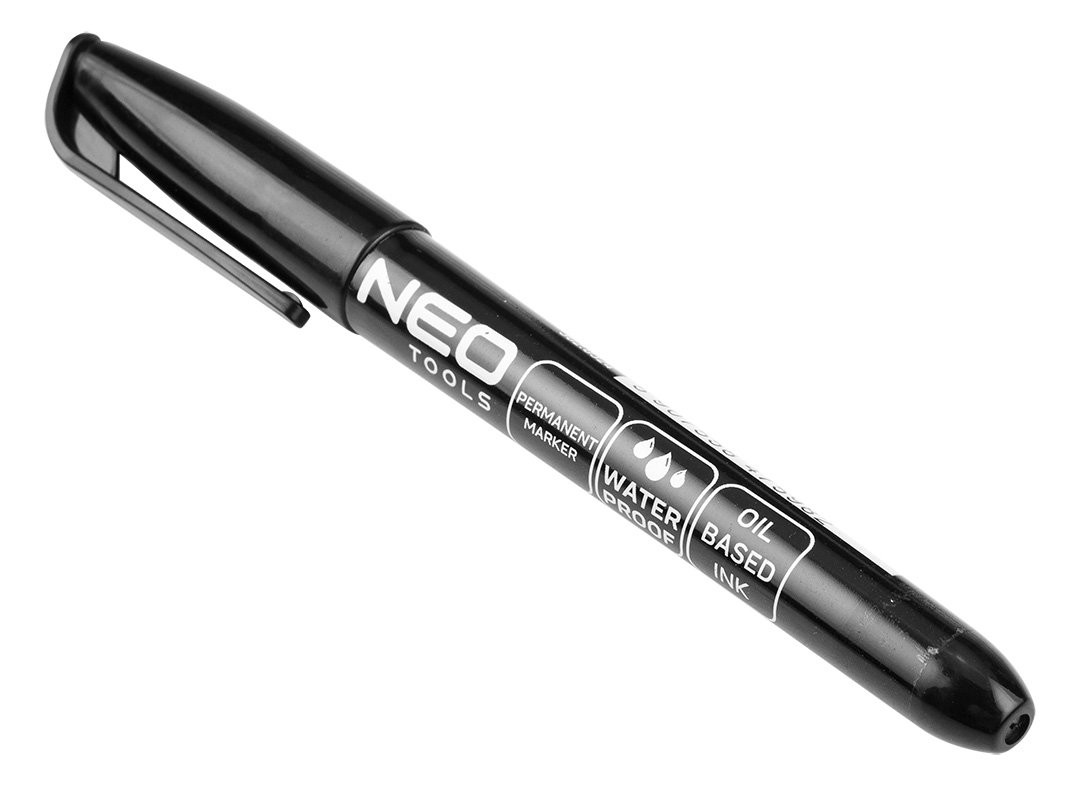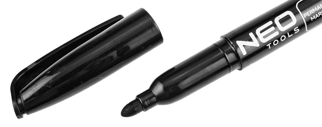 Marker budowlany, czarny, permanentny, wodoodporny, olejowy, 13-855 marki NEO TOOLS to marker budowlany z okrągłą końcówką o średnicy 4 mm. Marker charakteryzuje się czarnym tuszem. Jest olejowy, permanentny, szybkoschnący oraz wodoodporny. Świetnie sprawdzi się do stosowania na różnych rodzajach powierzchni, m.in. na metalu, szkle, kamieniu, drewnie i plastiku. Polecany zarówno do zastosowań profesjonalnych jak i domowych.
