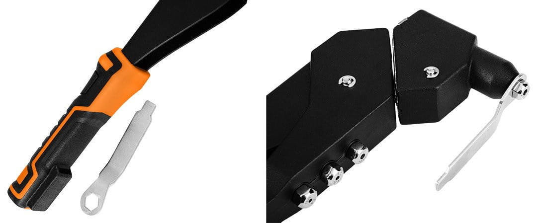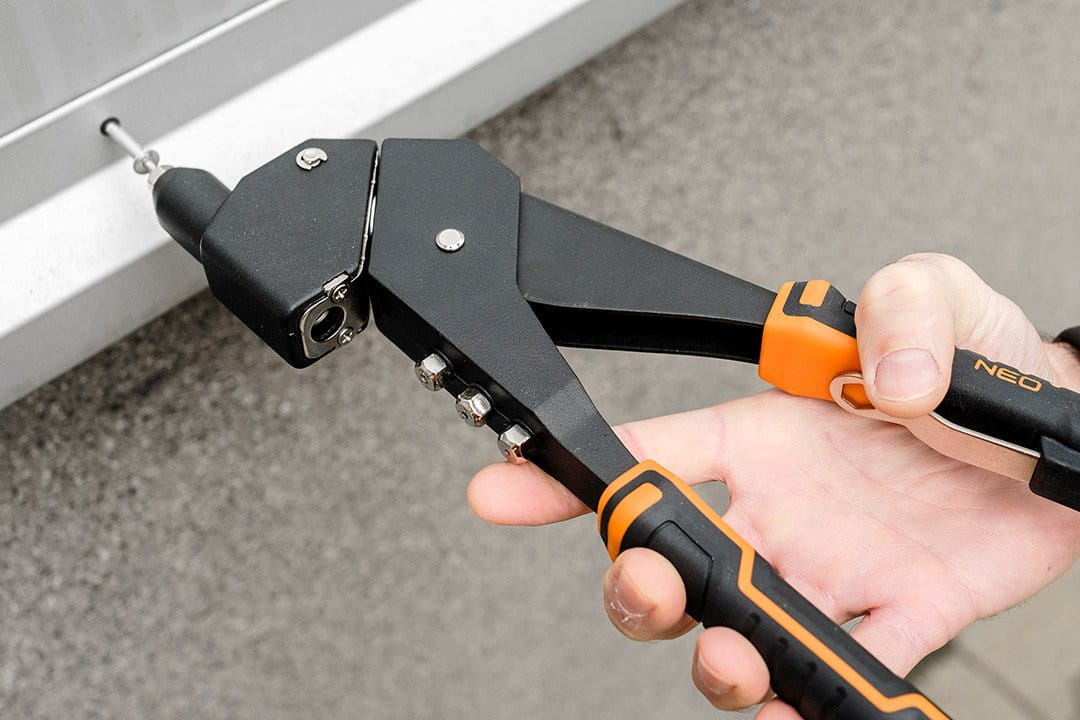 Nitownica do nitów stalowych i aluminiowych 2,4 /3,2 /4,0 /4,8 mm, wielopołożeniowa 18-102-1 marki NEO TOOLS to wielopołożeniowa nitownica do nitów stalowych i aluminiowych o średnicy 2,4/3,2/4/4,8 mm. Wyposażona w 4 praktyczne wymienne dysze. Może pracować z aluminium, stalą, miedzią oraz stalą nierdzewną (w zależności od użytej końcówki). Posiada aluminiowy korpus, głowicę obrotową 360 stopni, pierścień blokujący oraz klucz płaski. Wydłużony nos nadaje się do pracy w trudno dostępnych miejscach. Dołączony system blokujący w uchwycie pozwala sprawować większą kontrolę nad nitownicą marki NEO TOOLS. To urządzenie o wytrzymałej konstrukcji do długotrwałego użytkowania, które umożliwia wykonanie trwałego lub półtrwałego połączenia różnego rodzaju materiałów. Jest łatwe w obsłudze. Dobrze sprawdzi się w przypadku profesjonalistów jak i majsterkowiczów.