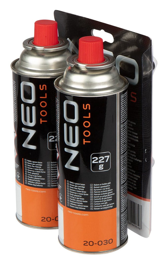 NEO 20-040 Palnik gazowy nakręcany + 2 naboje z gazem butan, 227g
