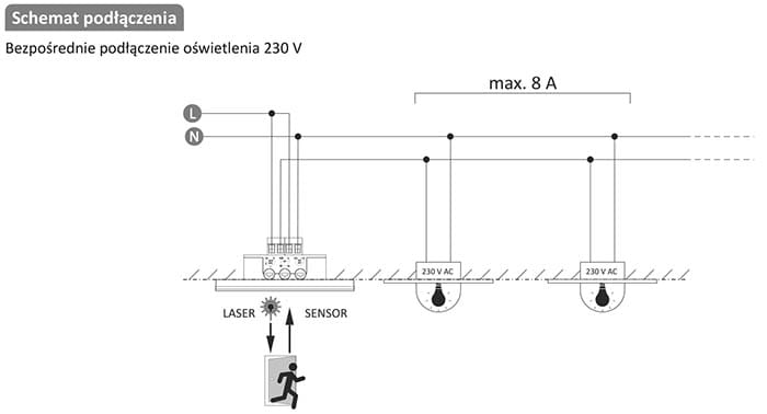 Laserowy czujnik odległości do bezpośredniego sterowania obwodami oświetleniowymi 230V AC