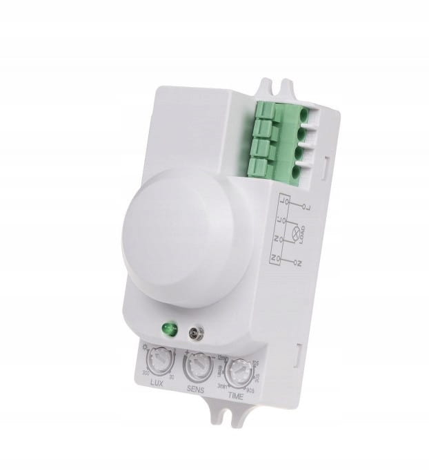 Czujnik ruchu służy do automatycznego, czasowego załączania oświetlenia w przypadku pojawienia się osoby lub innego obiektu w takich miejscach, jak korytarze, podwórza, podejścia i podjazdy, garaże, itp.Mikrofalowy czujnik ruchu DRM emituje i odbiera fale elektromagnetyczne wysokiej częstotliwości 5,8 Ghz. Czujnik wykrywa zmiany w odbiciu fal spowodowane przemieszczeniem się obiektu w obszarze detekcji. Czujnik rozpoznaje ruch obiektu do i od czujnika. Ruch w polu detekcji powoduje automatyczne załączenie oświetlenia. Od momentu załączenia ciągły ruch powoduje trwałe załączenie tego oświetlenia. Dopiero brak ruchu w polu detekcji wyzwala czas podtrzymania oświetlenia. Ponowny ruch w polu detekcji i jego zanik w trakcie odmierzania czasu, wyzwoli czas podtrzymania od początku. Charakter działania pozwala wykorzystać DRM jako czujnik obecności. Po nastawionym czasie oświetlenie zostanie wyłączone automatycznie. Czujnik ruchu wyposażony jest w automat zmierzchowy, uniemożliwiający załączenie sterowanego oświetlenia w ciągu dnia. Stan detekcji i gotowość do załączenia oświetlenia aktywowane są dopiero po zmierzchu. Czas aktywacji mikrofalowego czujnika ruchu może być korygowany przez użytkownika potencjometrem. Dodatkowo istnieje możliwość regulacji obszaru pola detekcji w zakresie promienia 3 ÷ 10 m (dla h = 2,5 m) oraz regulacja czasu załączenia odbiornika w zakresie 5 s ÷ 12 min. Załączenie odbiornika sygnalizowane jest świeceniem LED zielonej. Czujnik ruchu może pracować wewnątrz pomieszczeń. Czujnik pozwala na detekcję ruchu przez płyty drewniane, płyty kartonowo-gipsowe, szkło i tworzywa sztuczne.