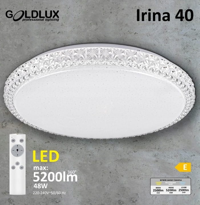 - Typ produktu: Plafon Irina LED 40 sterowany pilotem