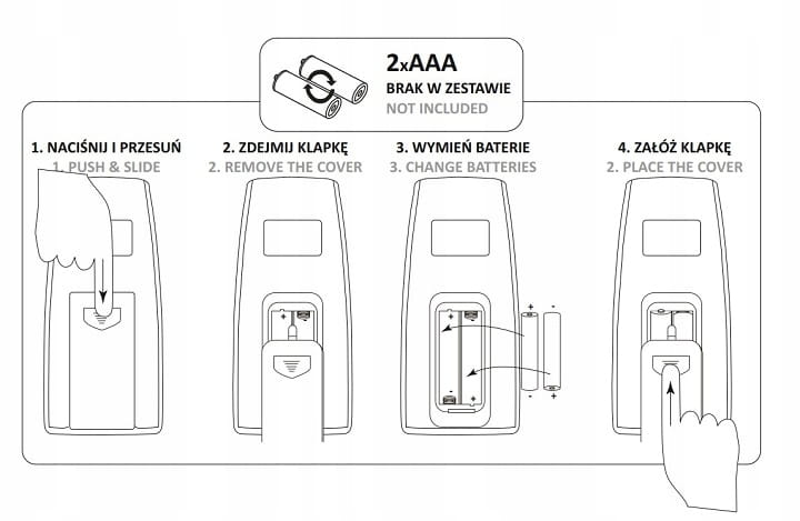 • Pilot w zestawie: Baterie 2 x AAA (BRAK W ZESTAWIE)