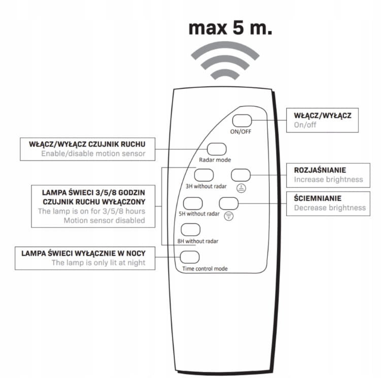 - Panel solarny: 12W, 6V; akumulator 3,2 V, 12000mAh, Li-LFP