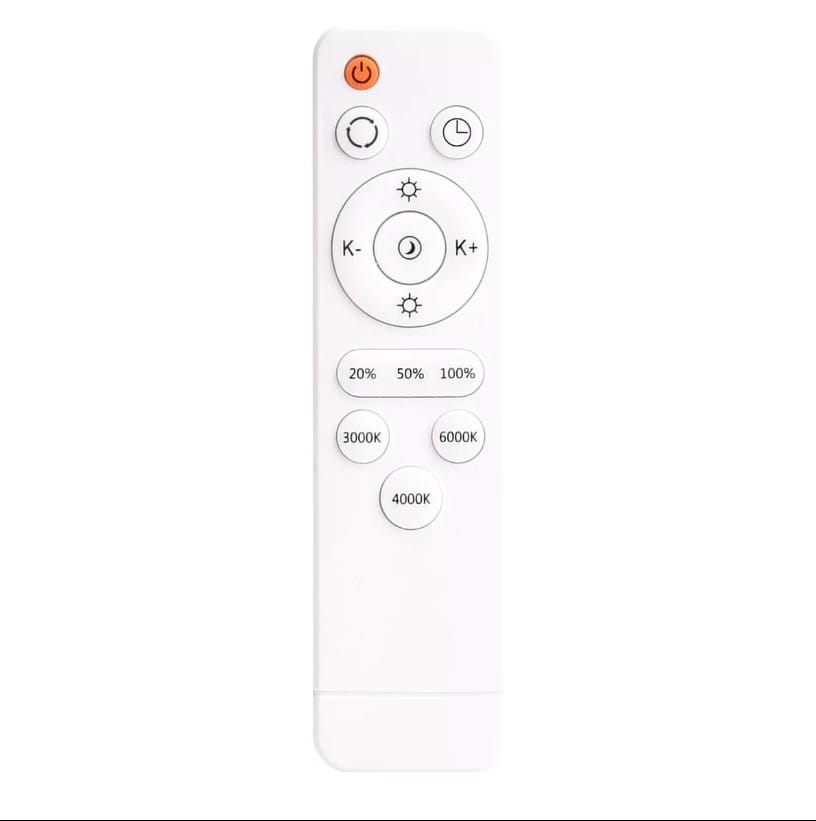 Plafon z pilotem za pomocą którego można płynnie zmienić barwę świecenia od ciepłej białej przez neutralną po zimno białą (3000K-4000K-6000K) oraz wybrać ilość światła, plafon z możliwością ściemniania.