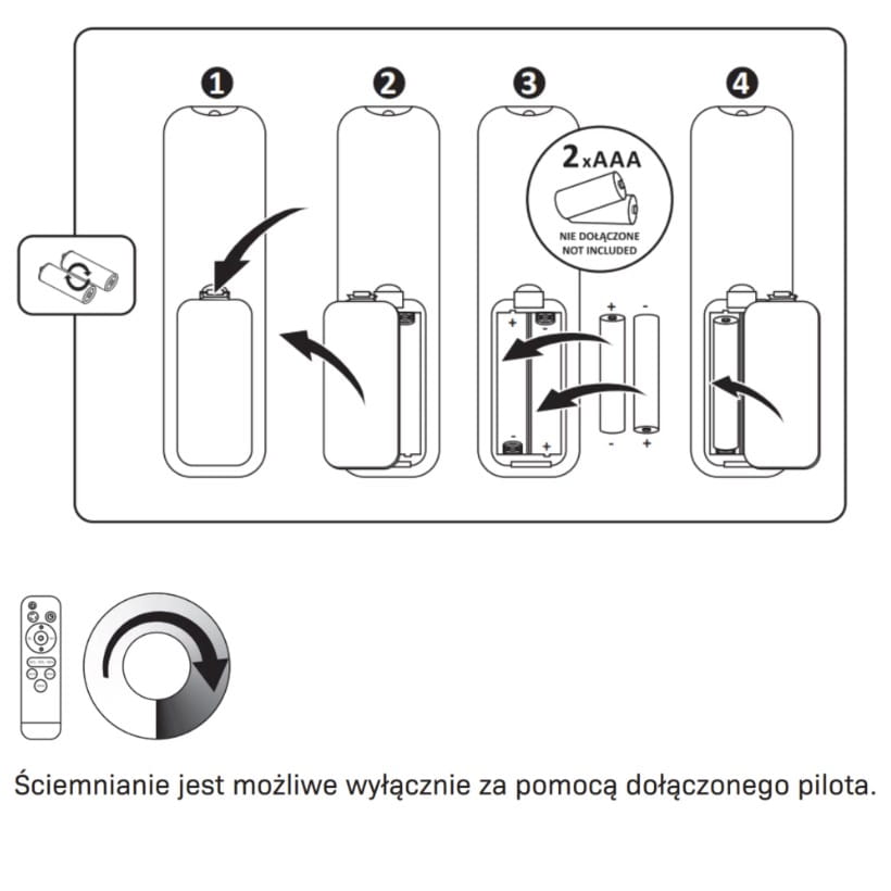 - Możliwość ściemniania: Tak, za pomocą pilota