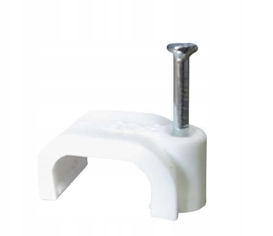 Do mocowania i układania przewodów, optymalny kształt dla pewnego umocowania przewodu, układanie na przewodzie, wykonane z ocynkowanym gwoździem stalowym.