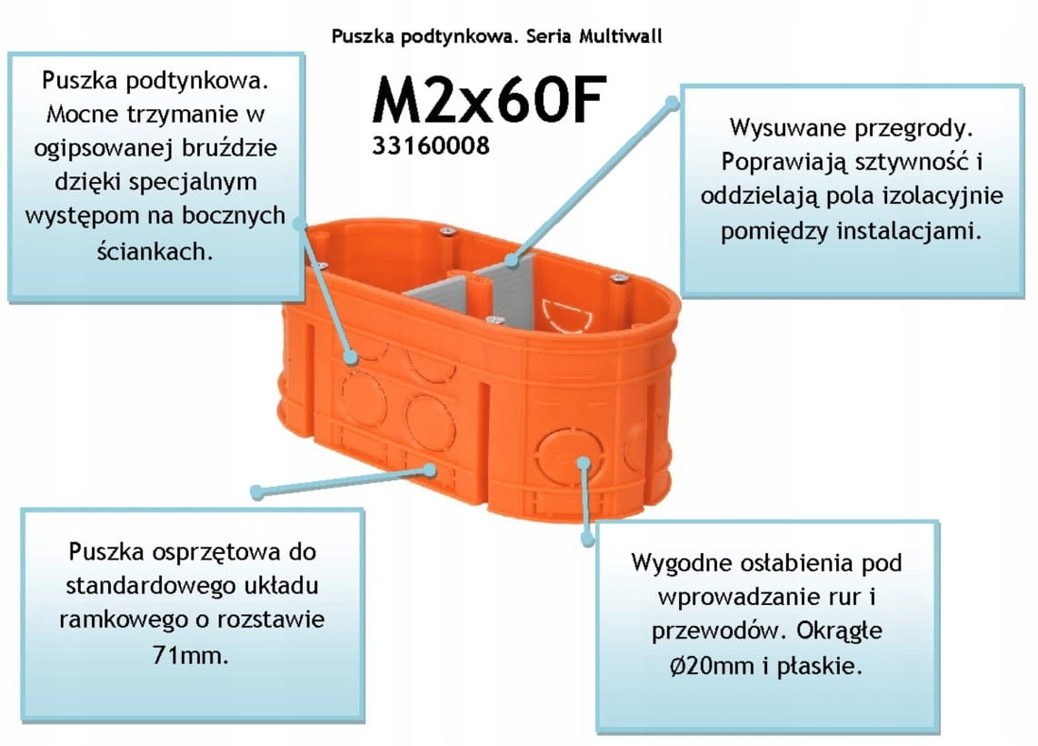 SIMET Puszka M2x60F podwójna podtynkowa pomarańczowa 33160008