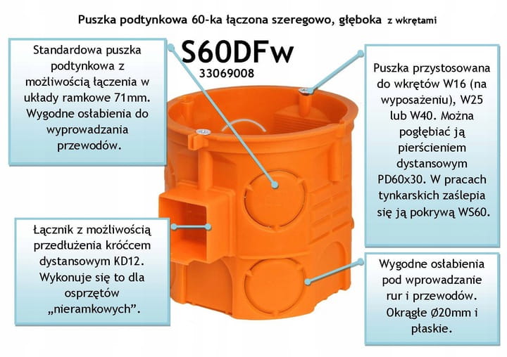 - Rodzaj budowy: Puszka elektroinstalacyjna