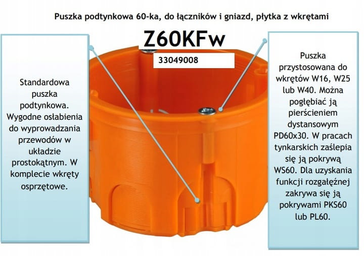 • Rodzaj budowy: Puszka elektroinstalacyjna