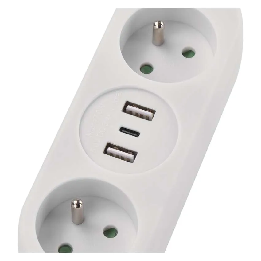 EMOS P0212U Przedłużacz 2 m 2 gniazda + 2×USB A+1×USB C biały PVC 1 mm2
