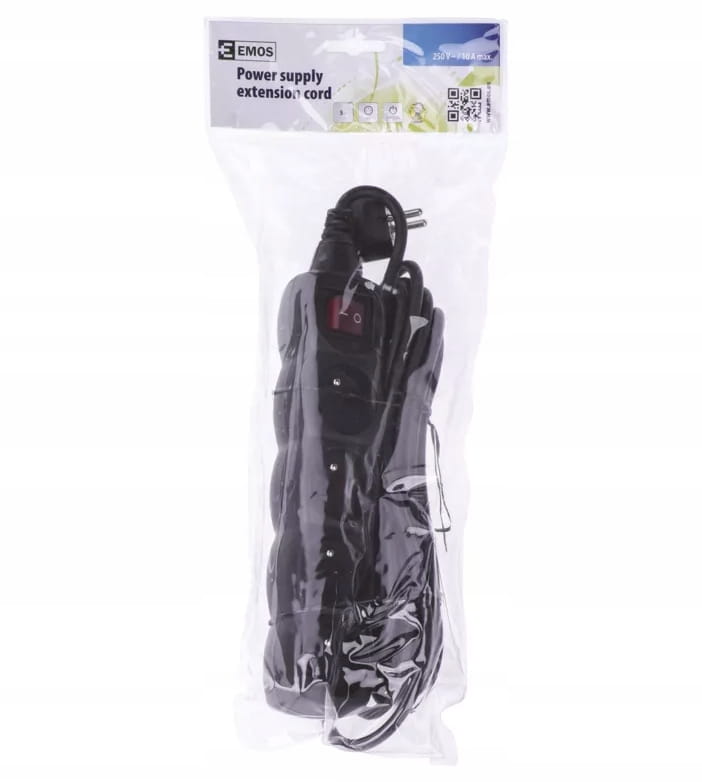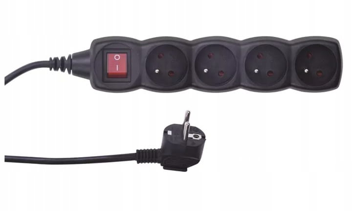 EMOS Przedłużacz z wyłącznikiem 4 gniazda 5m czarny PC1415