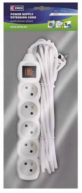 EMOS Przedłużacz z wyłącznikiem 5 gniazd 5m P1515 biały